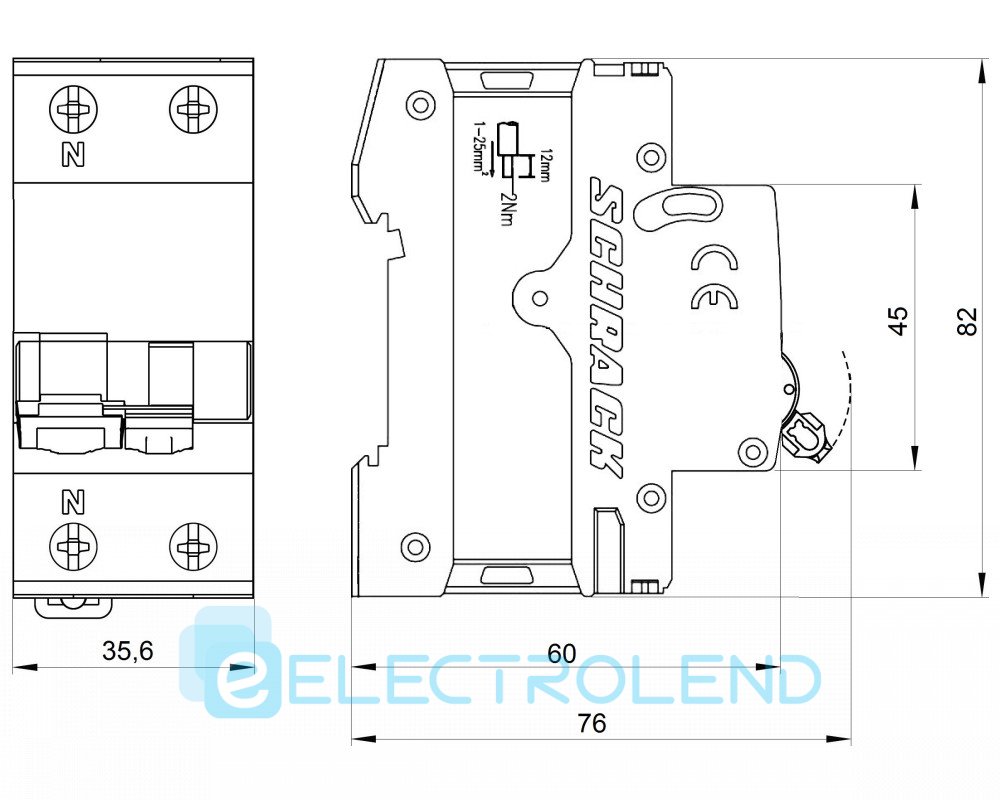 АВДТ 6кА/30мА 1P+N 16A х-ка B Тип A Schrack AK668616