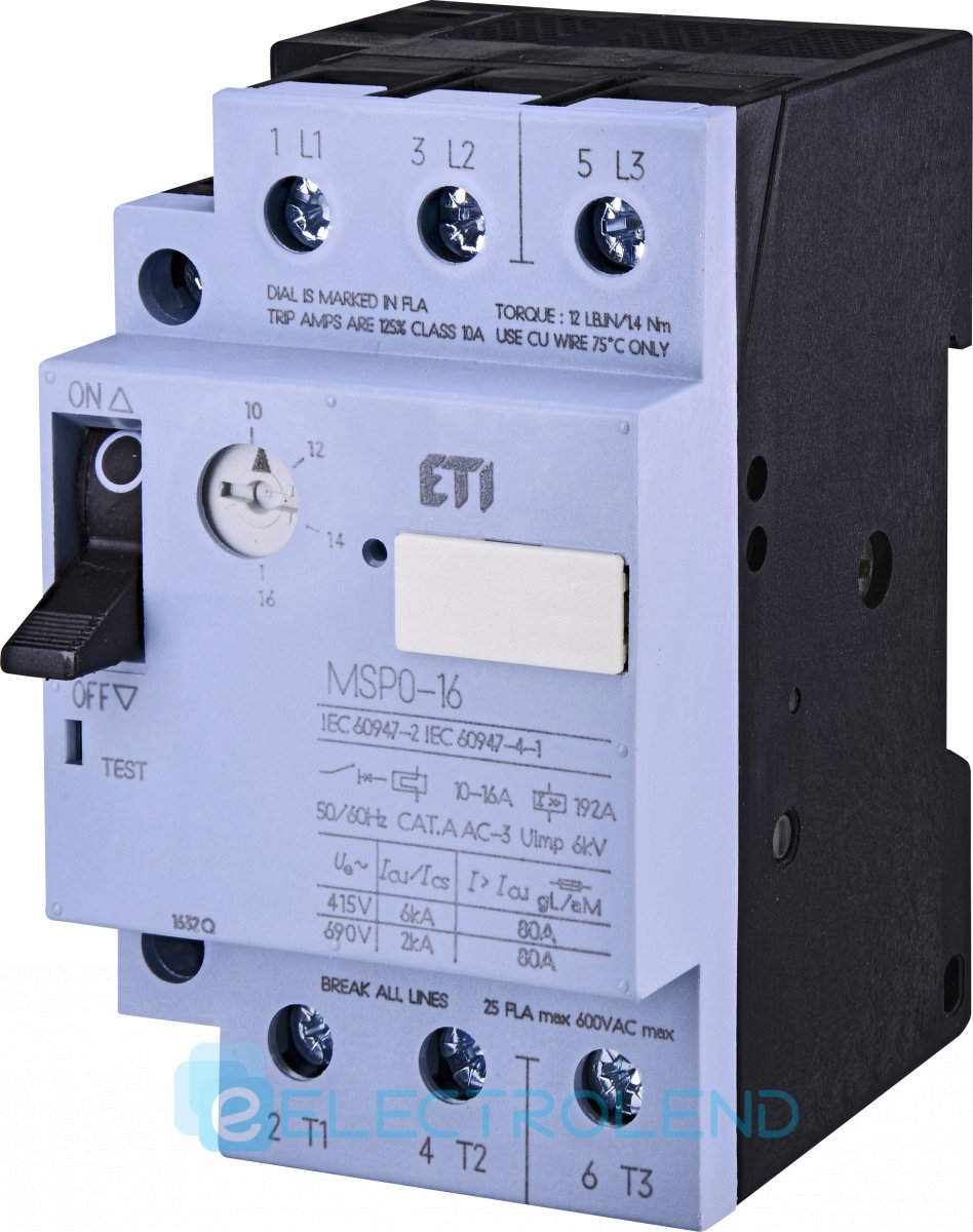 Автомат захисту двигуна MSP0-16 (7,5 кВт, 10-16 А) ETI 4646625