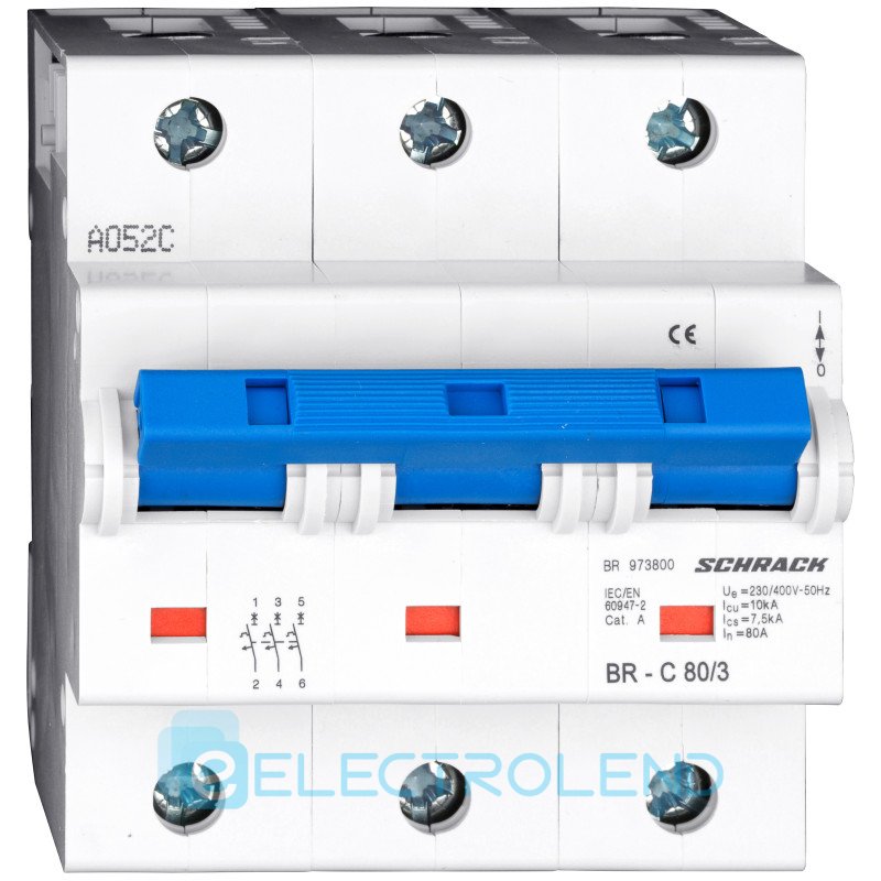 Автоматичний вимикач 10кА 3P 80A х-ка C Schrack BR973800