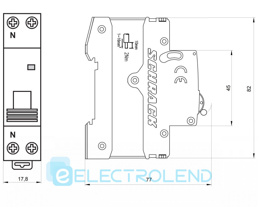 Автоматичний вимикач з нейтраллю 4,5кА 1P+N 16А х-ка B Schrack AM418516