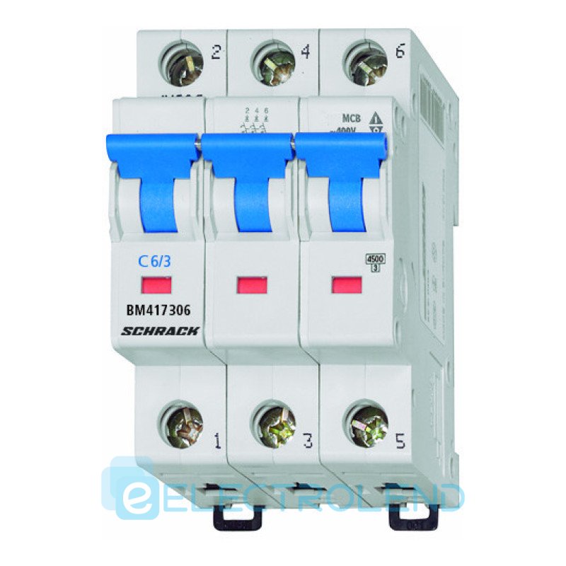 Автоматичний вимикач 4,5кА 3P 6A х-ка C Schrack BM417306