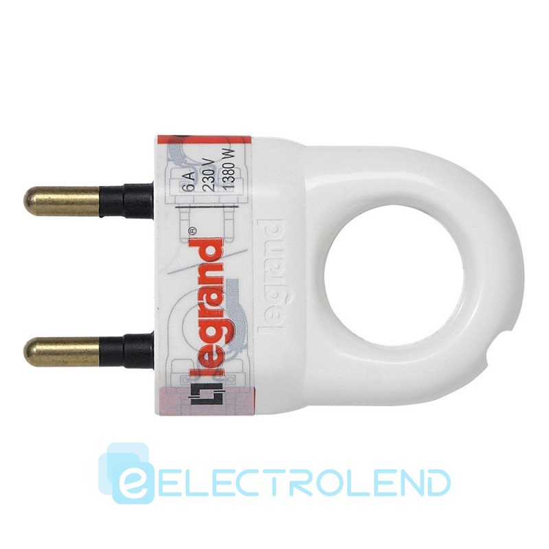 Біла електрична вилка з кільцем Legrand 2К 6А