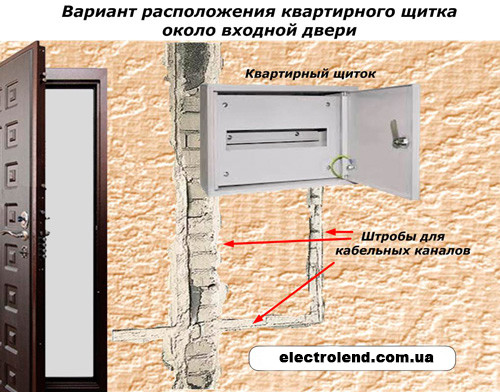 Почнемо з найпростішої частини — де розмістити розподільний щит в квартирі? Найзручніше розташувати біля вхідних дверей в передпокої. В цьому випадку не доведеться далеко тягнути кабель живлення з майданчика. Самий оптимальний варіант по висоті — на рівні очей дорослої людини. І показання лічильника зручно знімати, і відключити автомати при необхідності.