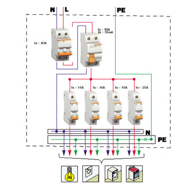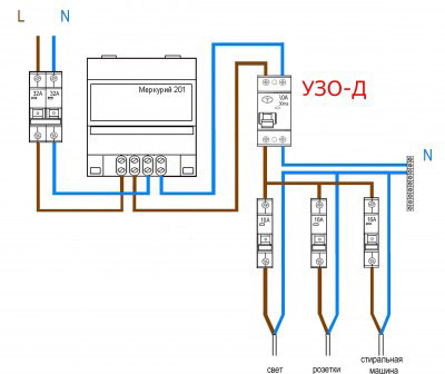 Схема електричного щитка в квартирі з УЗО і заземленням