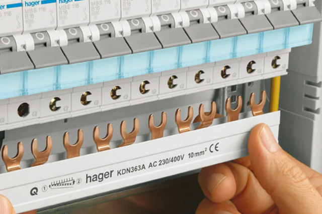 - Розподільні шини. Встановлюються для «зв'язування» лінійних автоматів, УЗО, дифавтоматов. Шини-гребінки мають надійну ізоляцію і дозволяють швидко і безпечно з'єднувати ряд автоматів через вхідний клемник. Можуть використовуватися як для токового провідника, так і для робочого нуля.