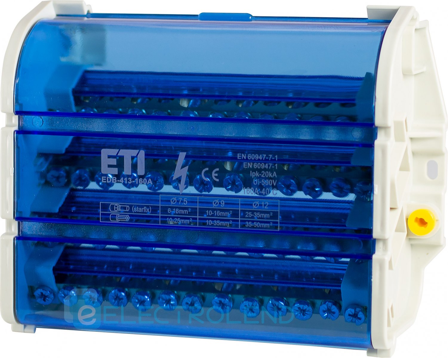 Блок розподільчий EDB-413-160A, 4p, 3L+PE/N, 160A (13 виходів) ETI 1102310