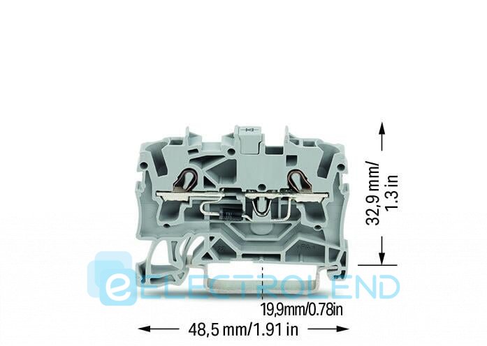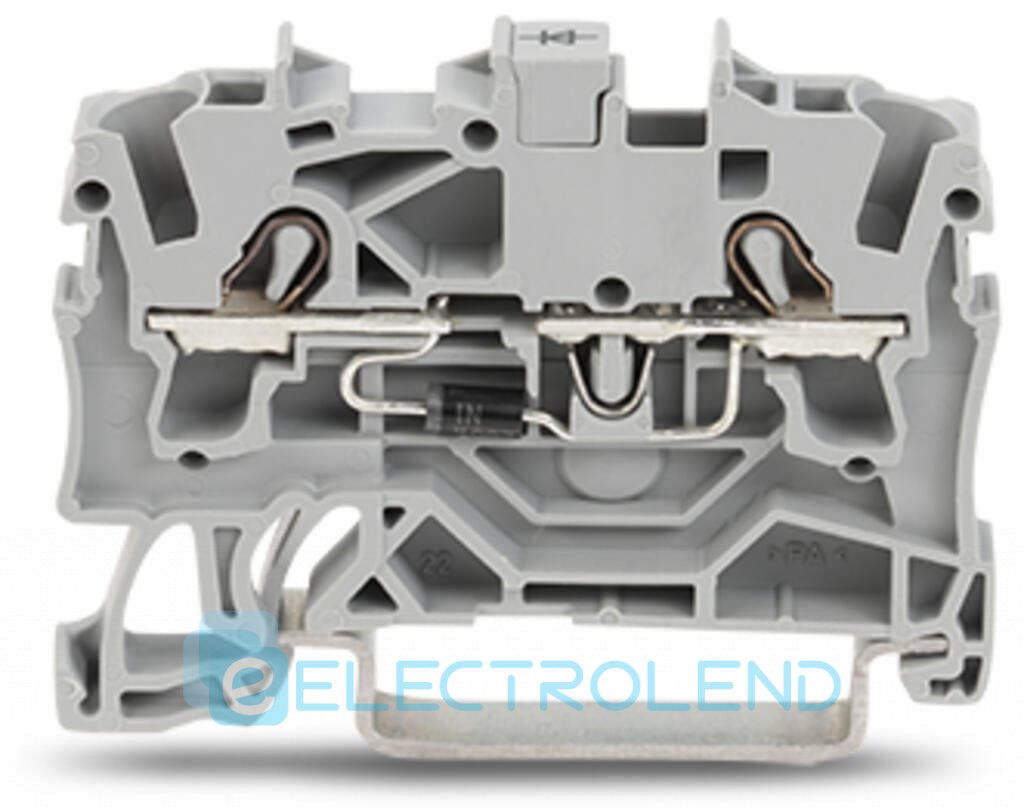 Діодна клема Wago 2002-1211/1000-411 з діодом 1N4007 (анод праворуч) 2,5мм² (сіра)