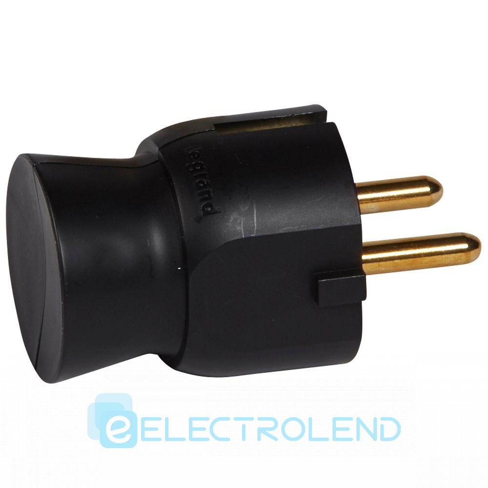Електромонтажна вилка Legrand 2К+З 16А бічний ввід чорна