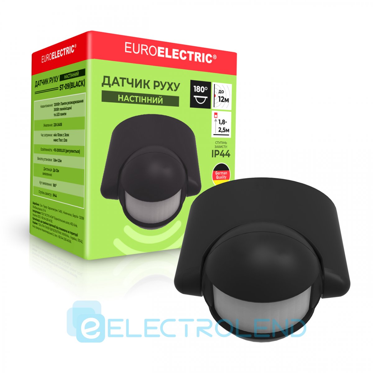 EUROELECTRIC Датчик руху настінний 180` макс. 12 м чорний (50) ST-09(black)