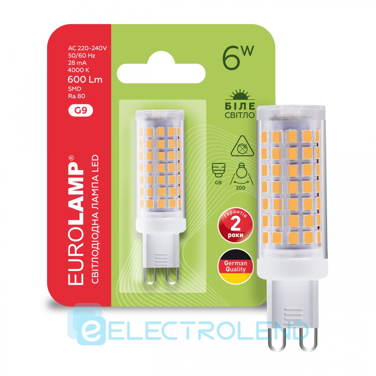 EUROLAMP LED Лампа капсульна G9 6W 4000K (100) LED-G9-0640(220)