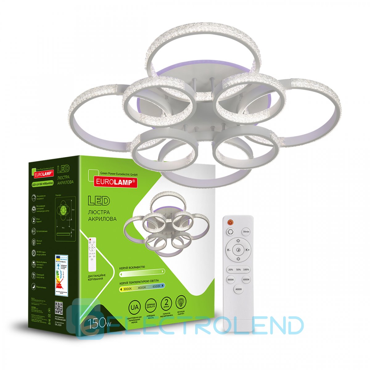 EUROLAMP LED Люстра світлодіодна акрилова кругла M19 150W 3000-6500K біла (6) LED-LR-150-M19(white)