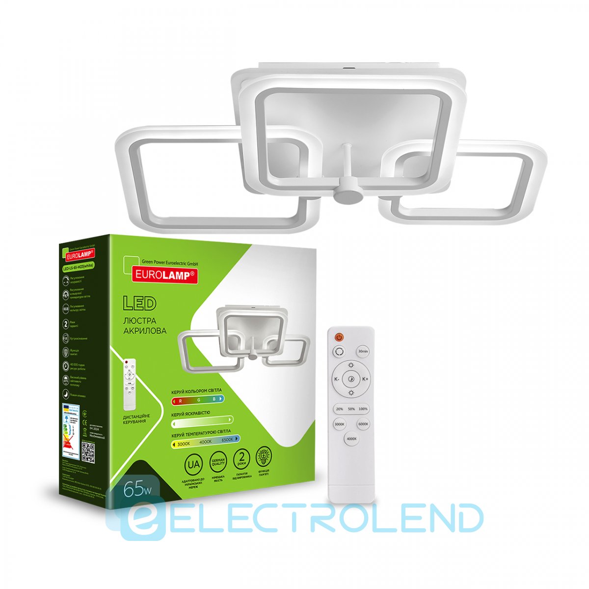 EUROLAMP LED Люстра світлодіодна акрилова квадратна M20 65W 3000-6500K біла (5) LED-LS-65-M20(white)