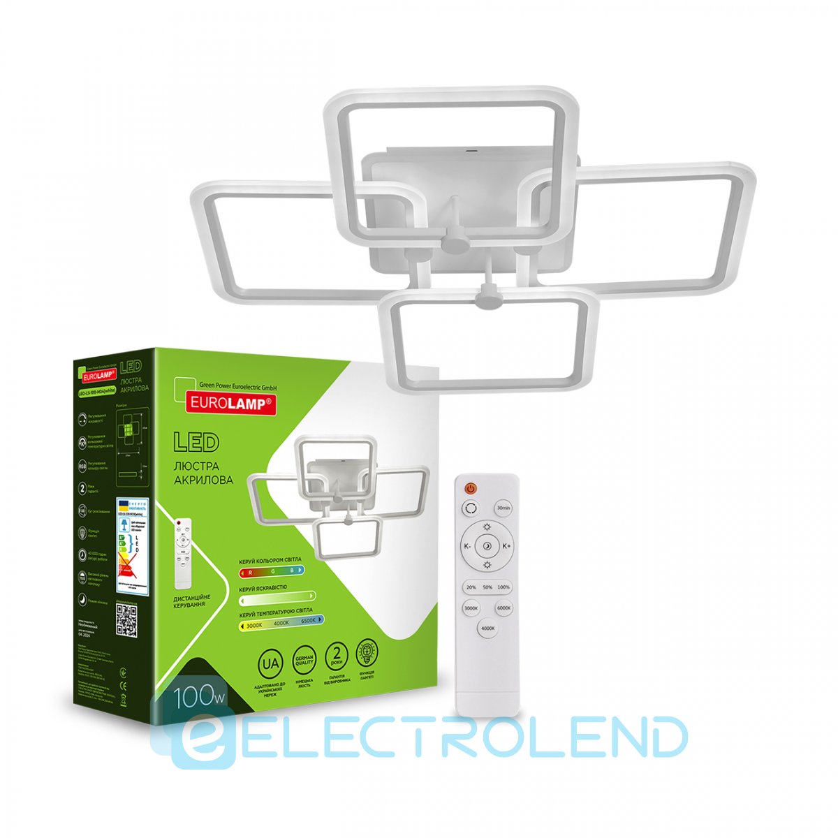 EUROLAMP LED Люстра світлодіодна акрилова квадратна M24 100W 3000-6500K біла (5) LED-LS-100-M24(white)