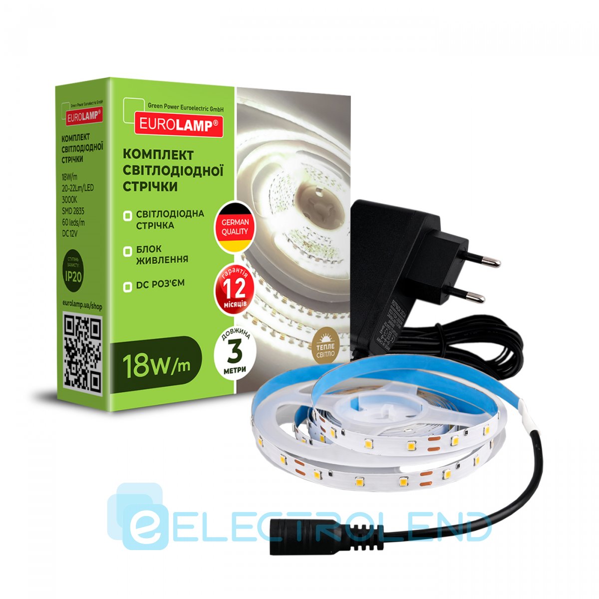 EUROLAMP LED Стрічка 60 діодів/м, 3м, 3000K, адаптер 12V (90) LED/SET-3M/3000K