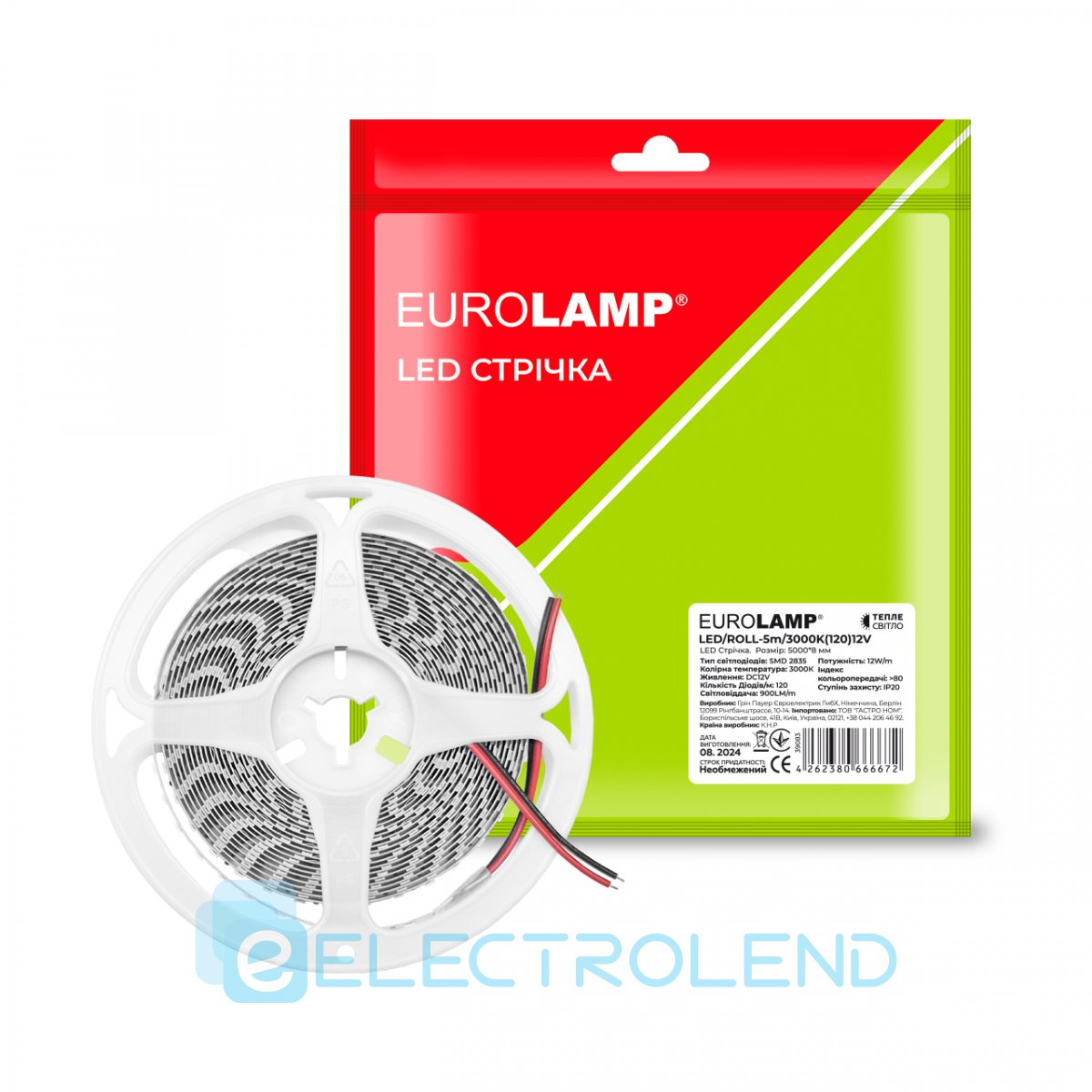 EUROLAMP LED Стрічка SMD2835, 120 діодів/м, 5м, 12V, 12W/M, 3000K (5) LED/ROLL-5m/3000K(120)12V
