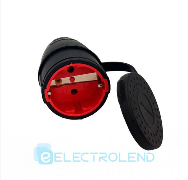 Гніздо з заземленням та кришкою каучук Чорне / Червоне NX2004