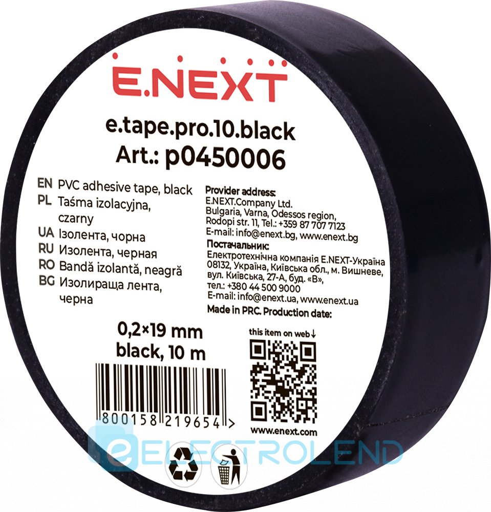 Ізолента e.tape.pro.10.black із самозгасаючого ПВХ, чорна (10м) p0450006