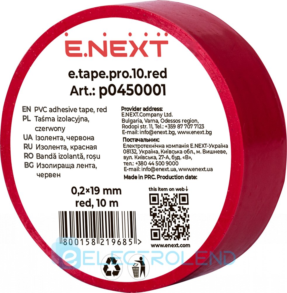 Ізолента e.tape.pro.10.red із самозгасаючого ПВХ, червона (10м) p0450001