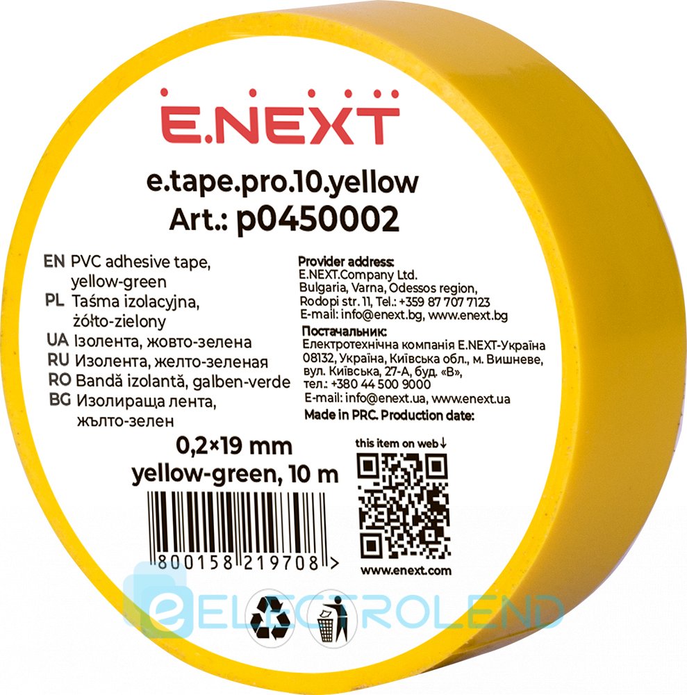 Ізолента e.tape.pro.10.yellow із самозгасаючого ПВХ, жовта (10м) p0450002