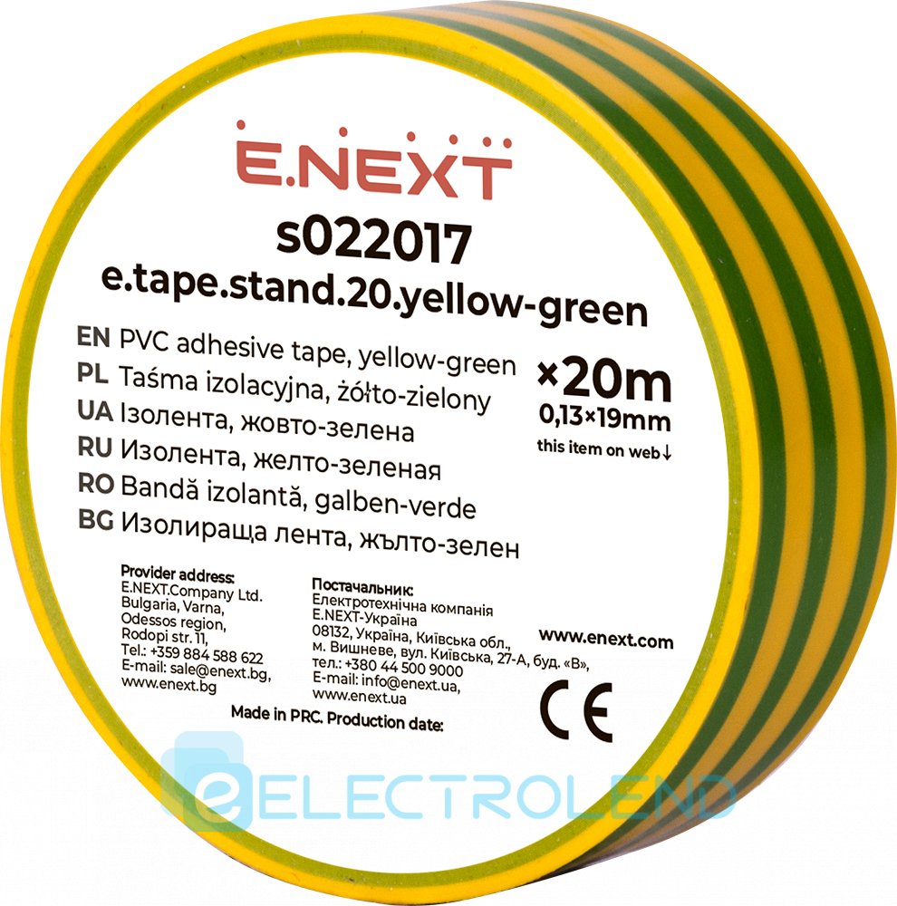 Ізолента e.tape.stand.20.yellow-green, жовто-зелена (20м) s022017