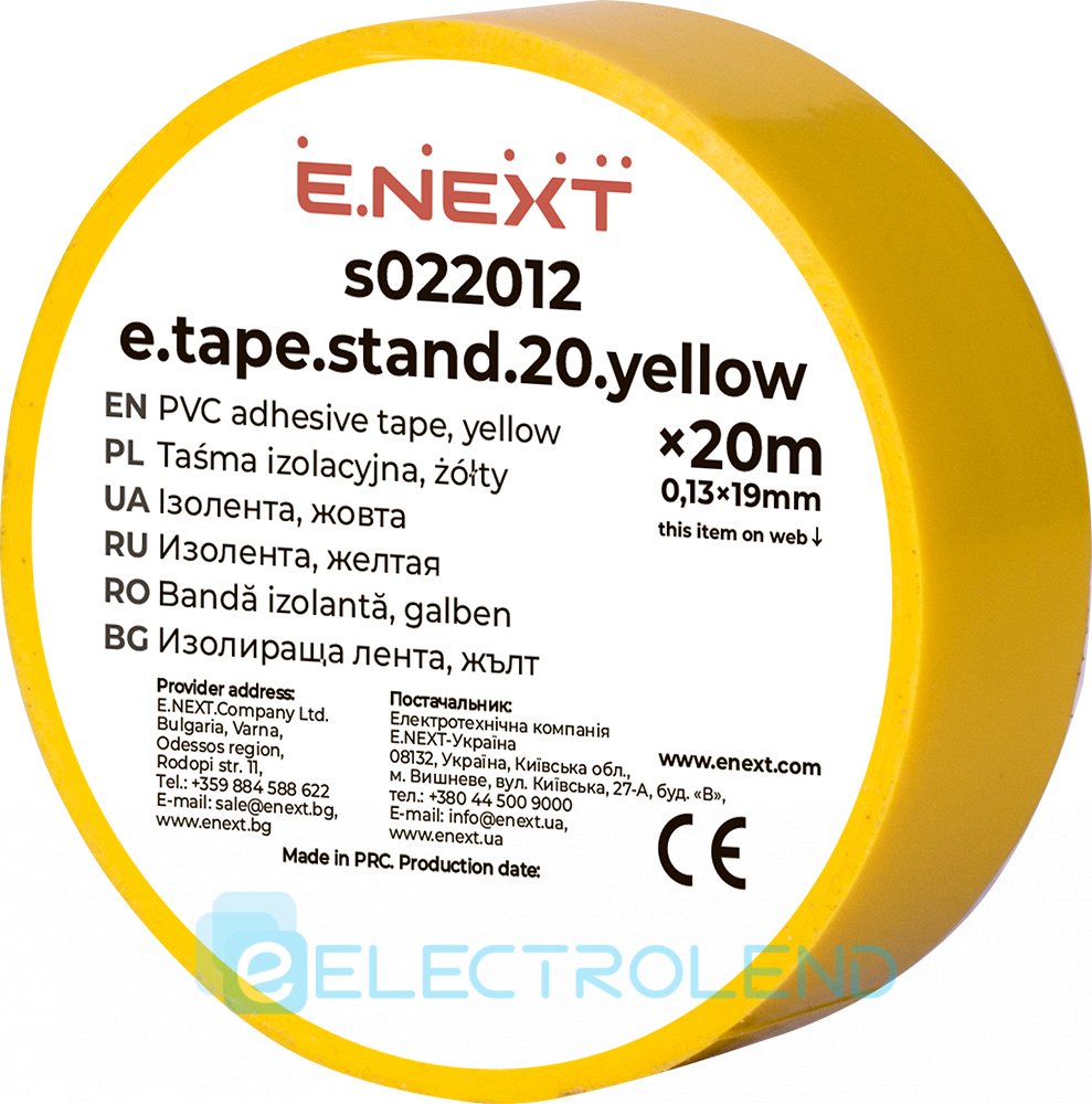Ізолента e.tape.stand.20.yellow, жовта (20м) s022012