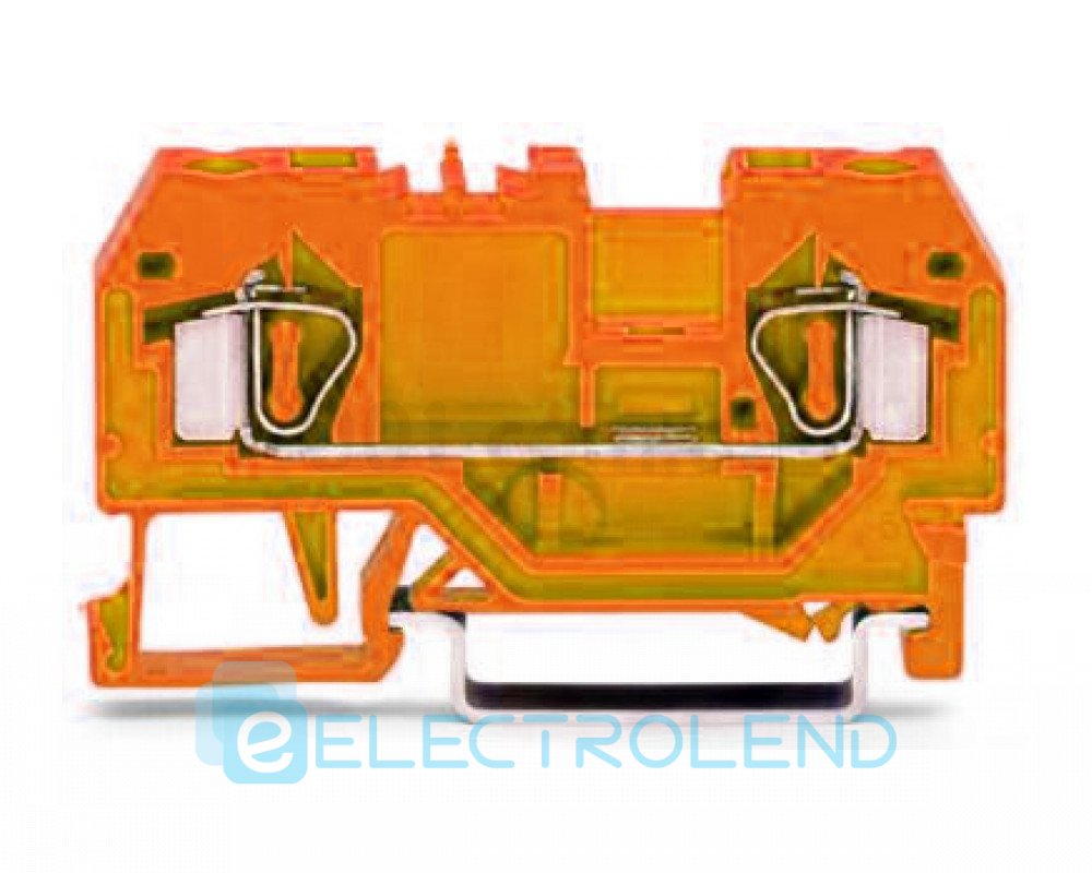 Клема прохідна з пружинним затискачем набірна 2-провідна 4,0 мм² оранжева, WAG