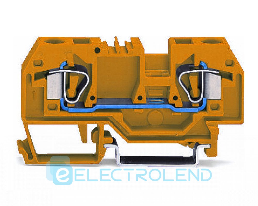 Клема прохідна з пружинним затиском набірна 2-провідна 6,0 мм² помаранчева, WAGO