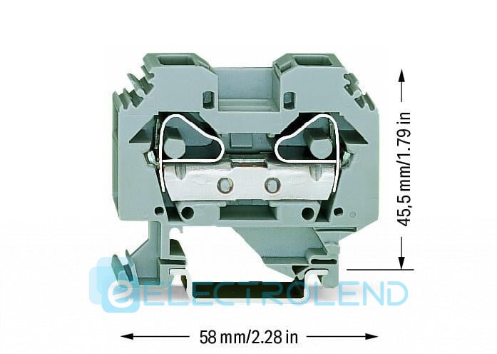 Клема прохідна з пружинним затиском набірна 2-провідна з бічним підключенням 16 мм² сіра, WAGO