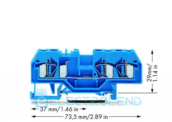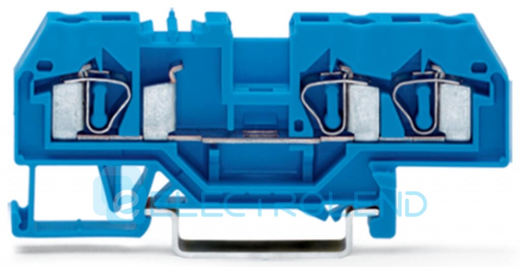 Клема прохідна з пружинним затиском набірна 3-провідна 4,0 мм² синя, WAGO