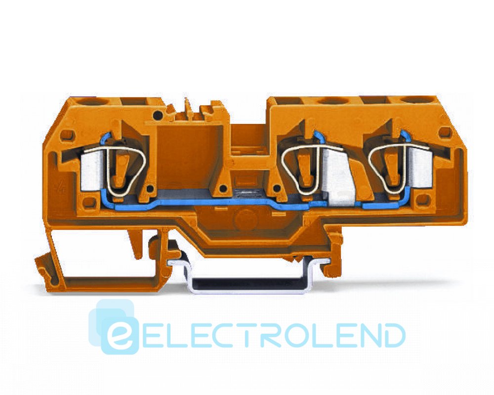 Клема прохідна з пружинним затиском набірна 3-провідна 6,0 мм² помаранчева, WAGO