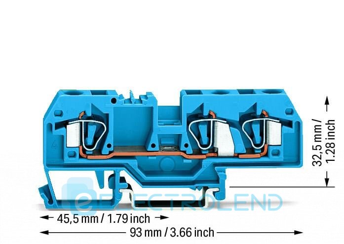 Клема прохідна з пружинним затиском набірна 3-провідна 6,0 мм² синя, WAGO