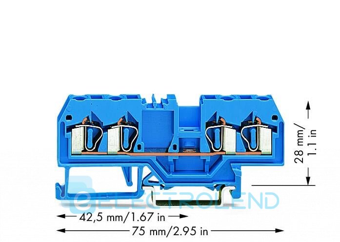 Клема прохідна з пружинним затиском набірна 4-провідна 2,5 мм² синя, WAGO