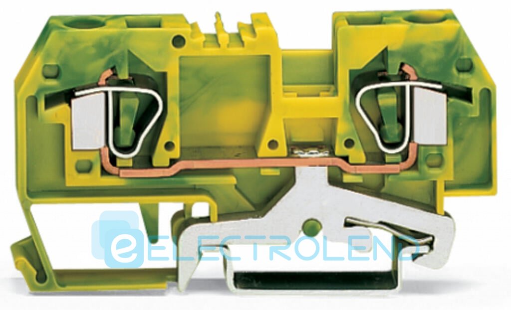 Клема заземлення з пружинним затиском набірна 2-провідна 6,0 мм² жовто-зелена, WAGO