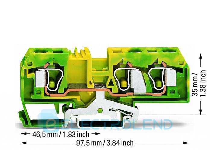 Клема заземлення з пружинним затиском набірна 3-провідна 10 мм² жовто-зелена, WAGO
