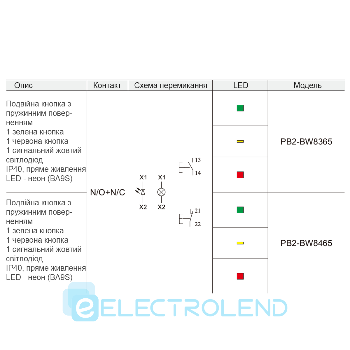 - Тип контактів: 1NO+1NC