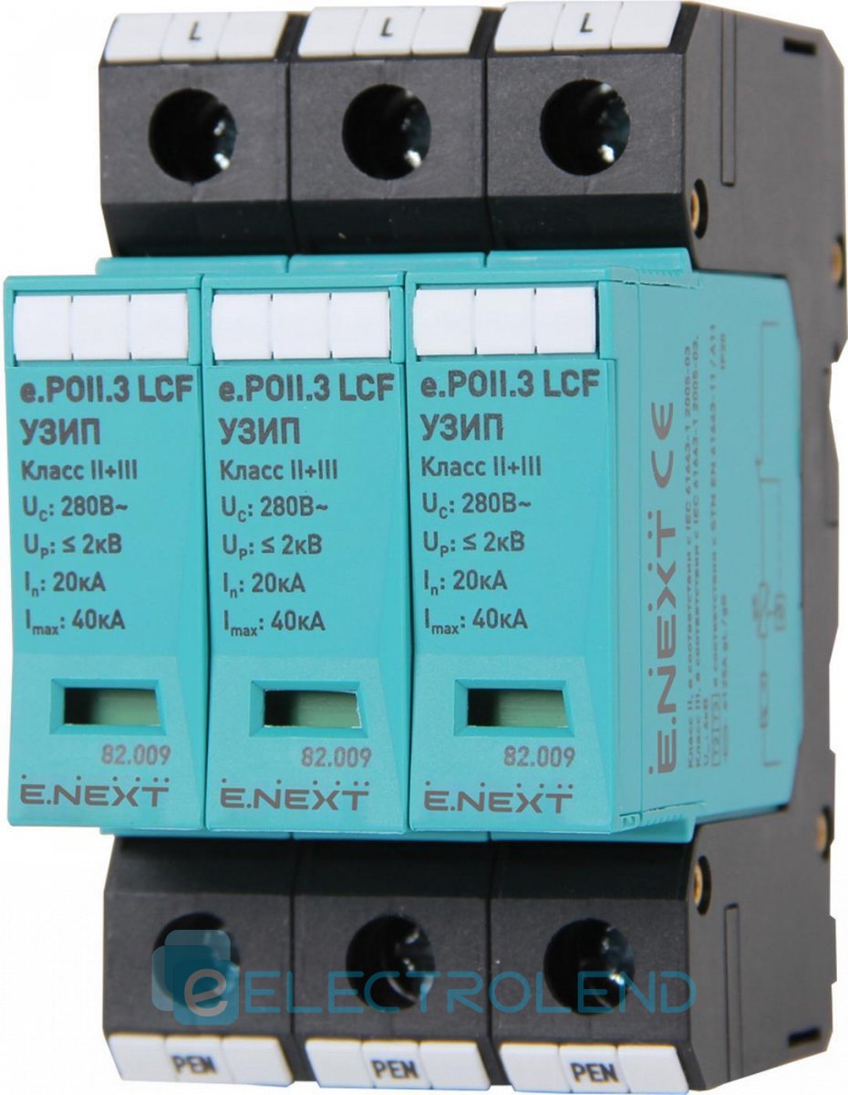 Комбінований ПЗІП e.POII.3 LCF клас II+III, 3 полюси 82.009