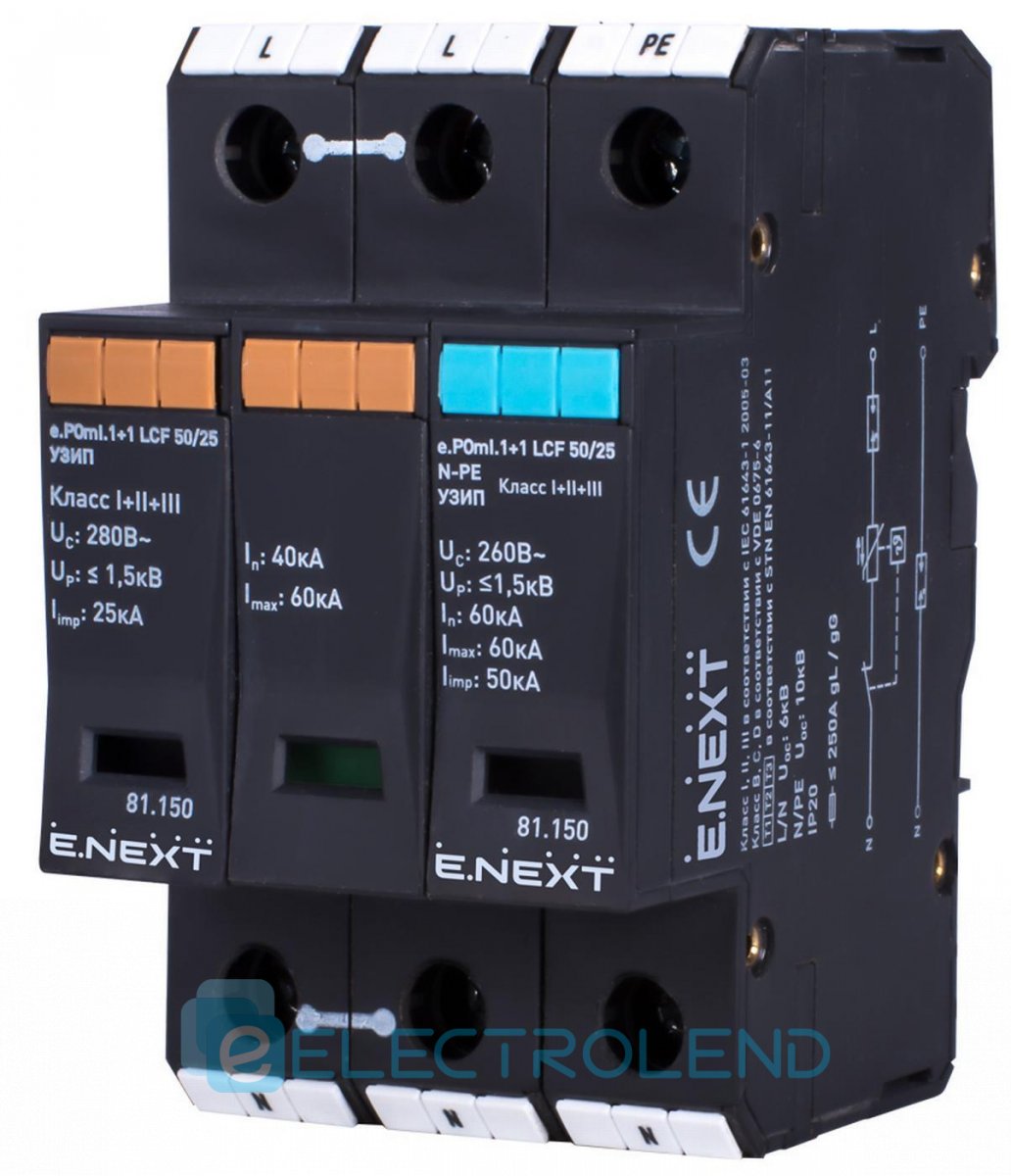 Комбінований ПЗІП e.POmI.1+1 LCF 50/25, клас I+II+III, 1 полюс + N-PE, моноблок 81.150