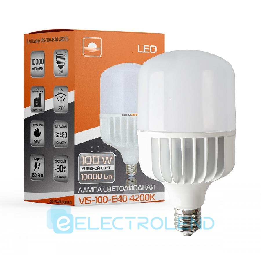 Лампа світлодіодна високопотужна Євросвітло 100Вт 4200К (VIS-100-E40) 000042336
