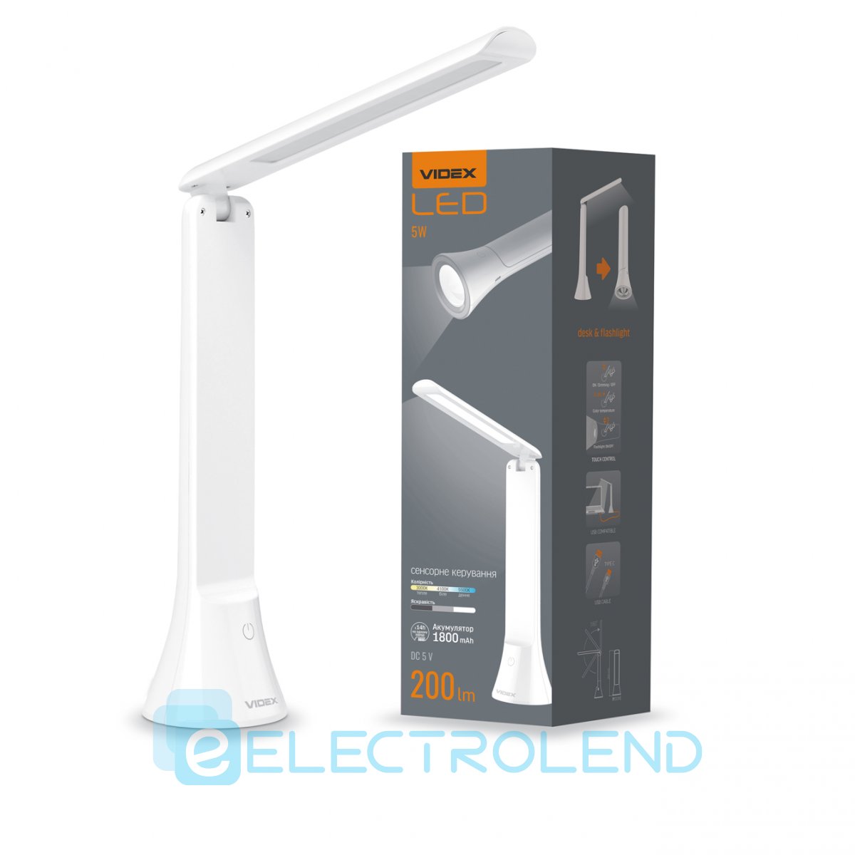 LED лампа настiльна-ліхтарик VIDEX TF11W 5W 3000-5500K
