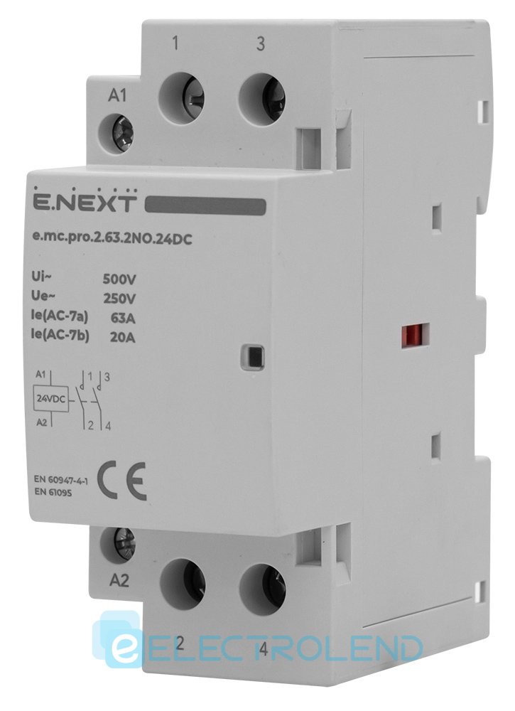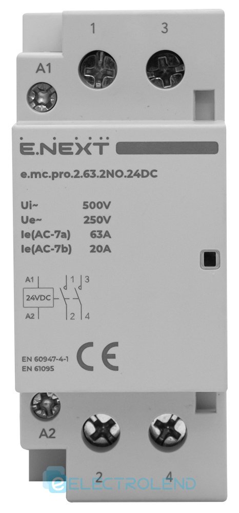 Модульний контактор e.mc.pro.2.63.2NO.24DC, 2р, 63А, 2NO, 24В p005318 E.NEXT