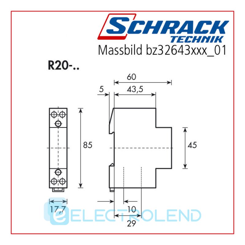 Контактор модульний, 1НО+1НЗ, 25А, котушка 230В АС Schrack BZ326479