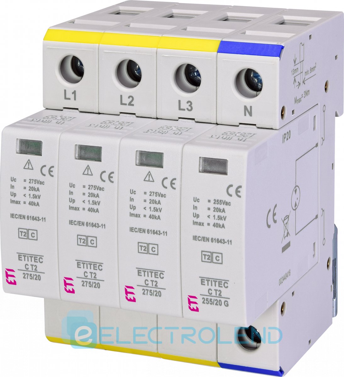 Обмежувач перенапруги ETITEC C T2 275/20 (3+1) 4p ETI 2440403