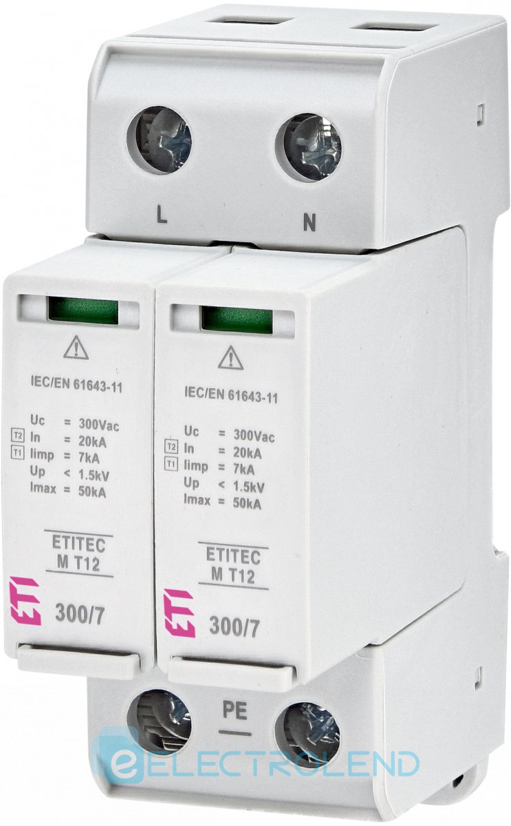 Обмежувач перенапруги ETITEC M T12 300/7 (2+0, 2p, TNC-S) ETI 2440502