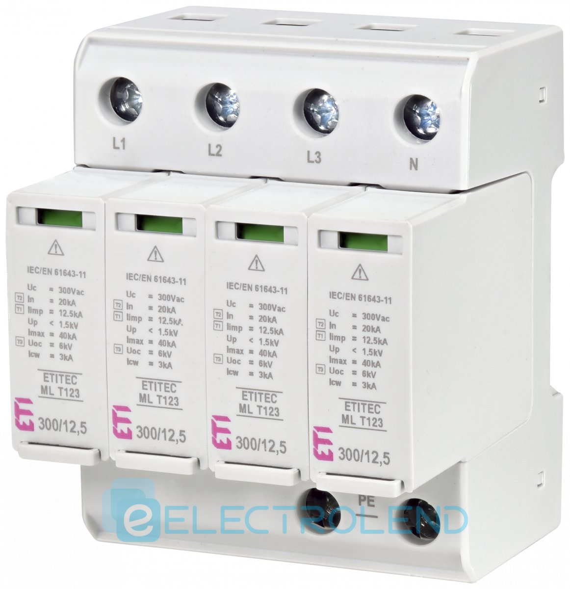 Обмежувач перенапруги ETITEC ML T123 300/12,5 (4+0, 4p, TNC-S) ETI 2440667