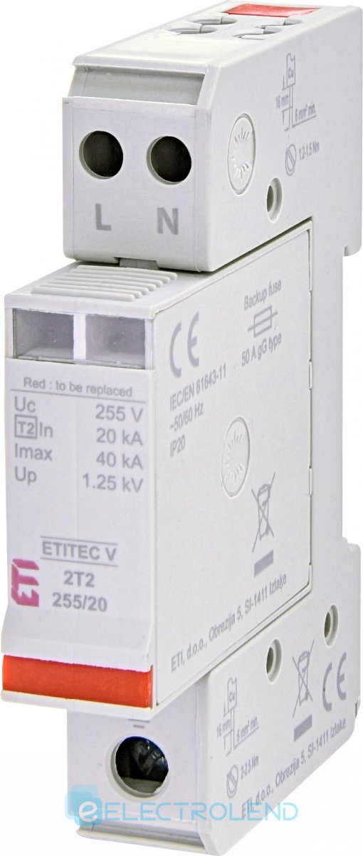 Обмежувач перенапруги ETITEC V 2T2 255/20 (2+0) ETI 2442940