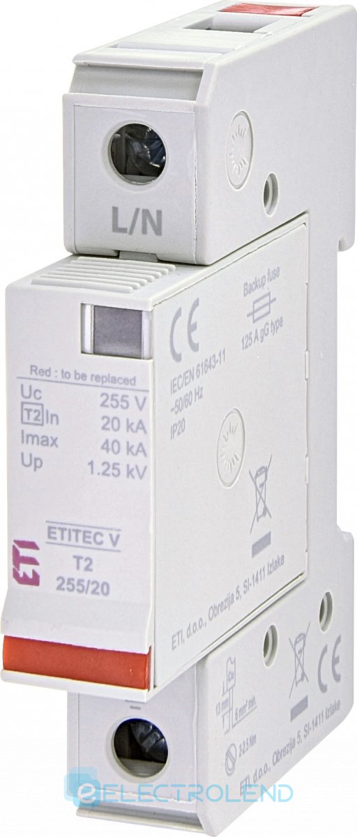 Обмежувач перенапруги ETITEC V T2 255/20 (1+0) ETI 2442952