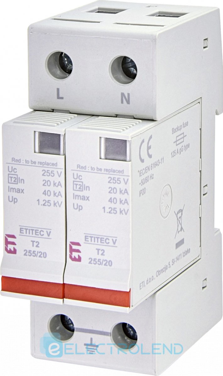 Обмежувач перенапруги ETITEC V T2 255/20 (2+0) ETI 2442953