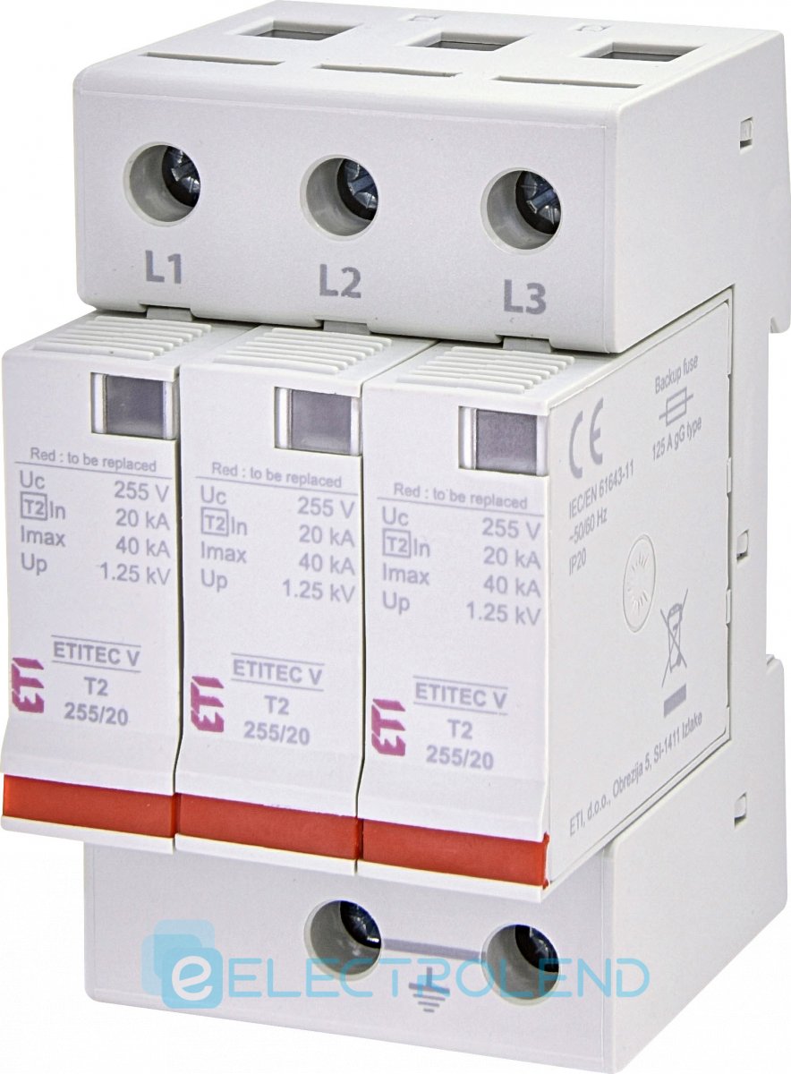 Обмежувач перенапруги ETITEC V T2 255/20 (3+0) ETI 2442955