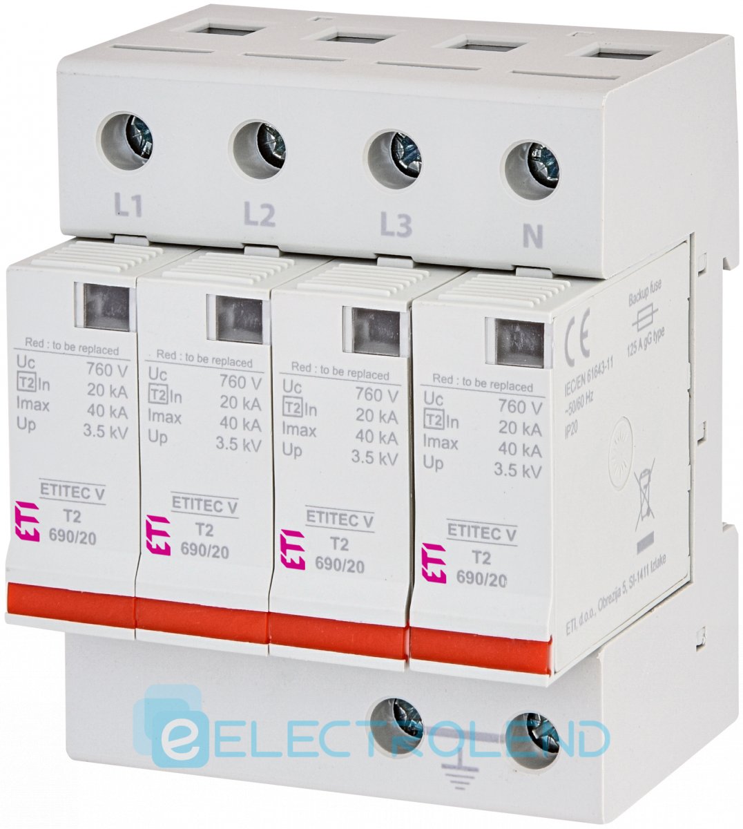 Обмежувач перенапруги ETITEC V T2 690/20 4+0 RC ETI 2442989