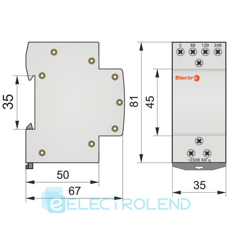 Понижуючий Трансформатор струму ТП-230В/8-12-24В 8ВА, Electro